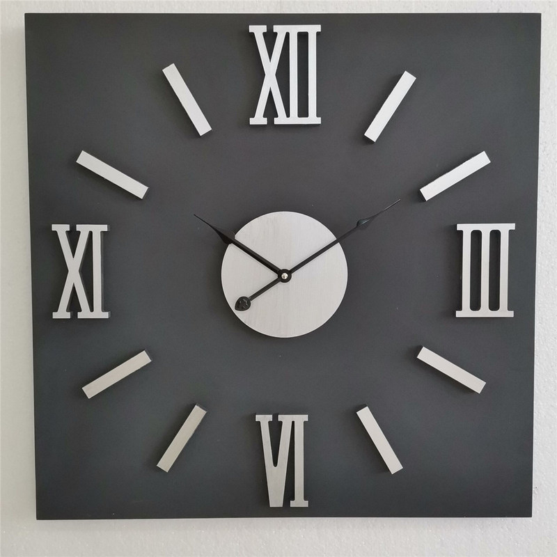 벽 훈장을 위한 회색 정연한 나무로 되는 시계 숫자 금속 표면 과정